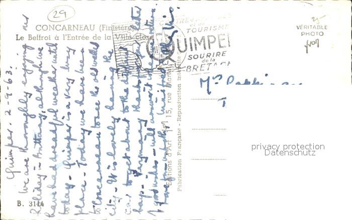 12306084 carte postale Concarneau Finistere Le Beffroi postalisch gelaufen Erhaltung siehe scans KatCode: 11170029429039