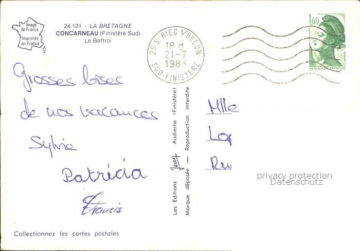 12328925 carte postale Concarneau Finistere Le Beffroi postalisch gelaufen Erhaltung siehe scans KatCode: 11170029429039