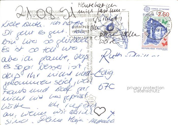 12502826 carte postale Concarneau Finistere Le Cabellou Fliegeraufnahme postalisch gelaufen Erhaltung siehe scans KatCode: 11170029429039