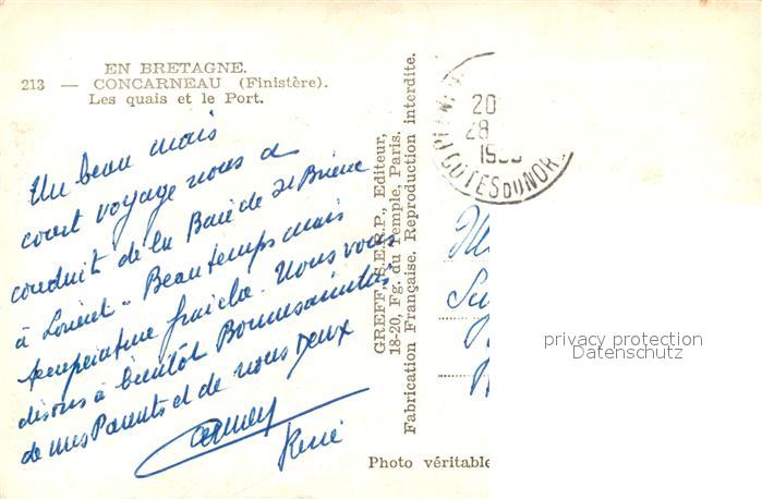 13580035 carte postale Concarneau Finistere Les quais et le port bateaux de pêche postalisch gelaufen Erhaltung siehe scans [FriedD77] KatCode: 11170029429039