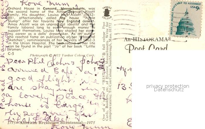 73131788 old postcard Concord Massachusetts Orchard House postalisch gelaufen Erhaltung siehe scans [FriedD77] KatCode: 14140230000000