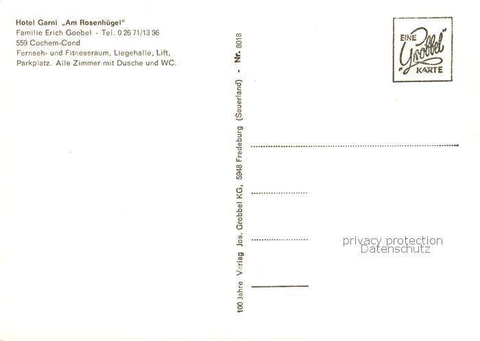73845250 Cond Mosel Hotel Garni Am Rosenhuegel postalisch nicht gelaufen Erhaltung siehe scans [WerneD78] KatCode: 11110007135020