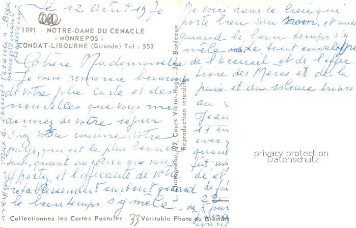 13499788 Condat Libourne Notre Dame du Cenacle Monrepos postalisch nicht gelaufen Erhaltung siehe scans [LiesaD40] KatCode: 11170033533243
