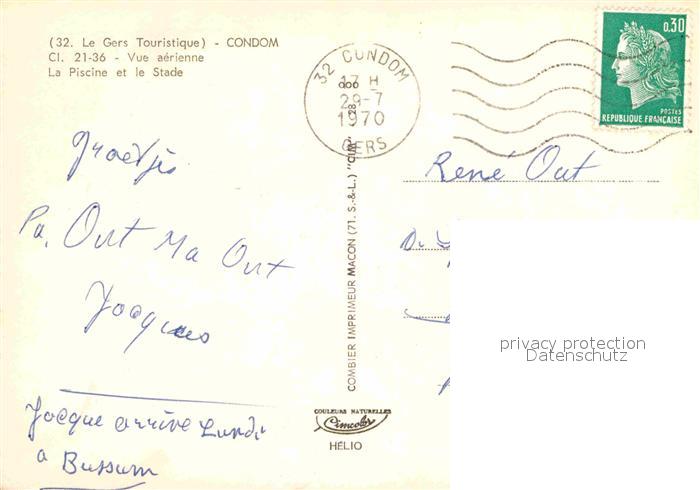 12839004 carte postale Condom Fliegeraufnahme Stadion Schwimmbad postalisch gelaufen Erhaltung siehe scans [KathaD81] KatCode: 11170032232107