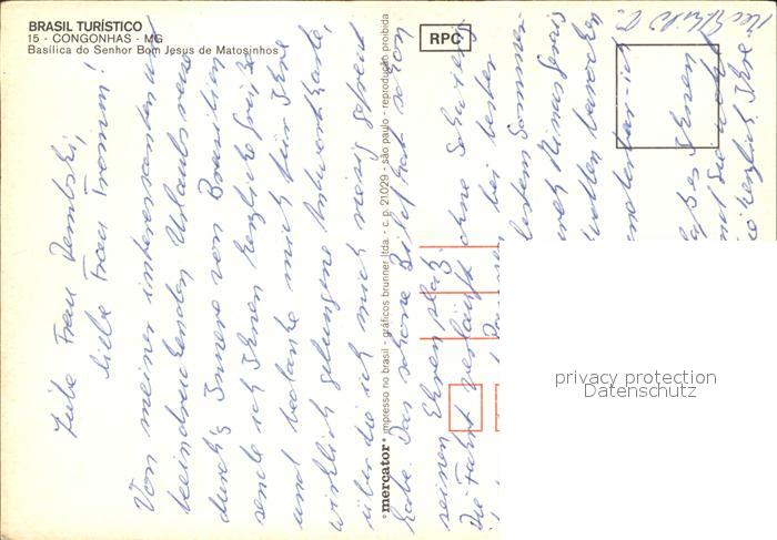 alte Postkarte Congonhas Basilica do Senhor Born Jesus de Matosinhos postalisch gelaufen Erhaltung siehe scans