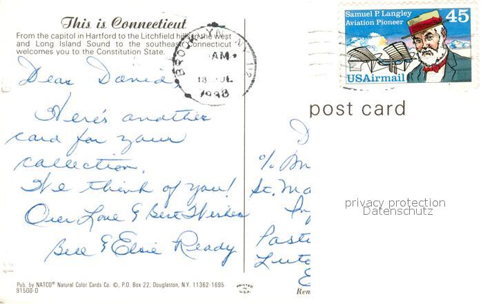 73059022 old postcard Connecticut US-State Capitol in Hartford Litchfield hills in the West and Long Island Sound postalisch gelaufen Erhaltung siehe scans [WerneD78] KatCode: 14140070000000