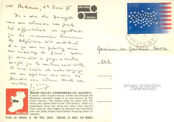 old postcard Connemara Panorama Maam Valley Pferde postalisch gelaufen Erhaltung siehe scans [FriedD77]