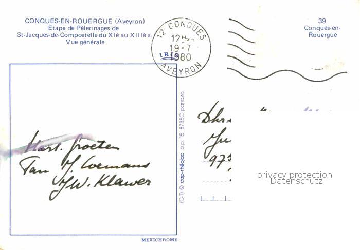 12663280 carte postale Conques en Rouergue Pyrenees Region Fliegeraufnahme Sankt Jacques de Compostelle postalisch gelaufen Erhaltung siehe scans [AndreD76] KatCode: 11170065165286