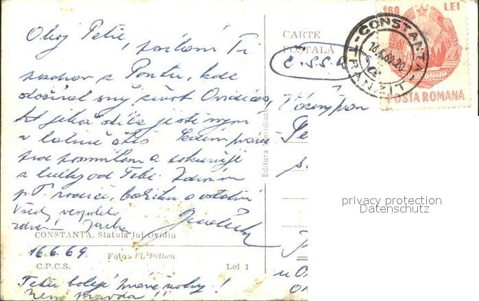 old postcard Constanta Statuia lui Ovidiu Denkmal Statue postalisch gelaufen Erhaltung siehe scans