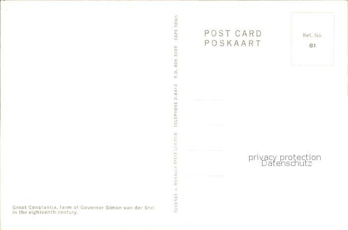 72528692 Constantia Farm of Governor Simon van der Stel postalisch nicht gelaufen Erhaltung siehe scans KatCode: 14140340000000