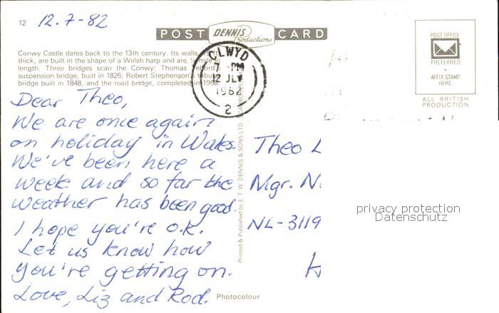old postcard Conwy Castle postalisch gelaufen Erhaltung siehe scans