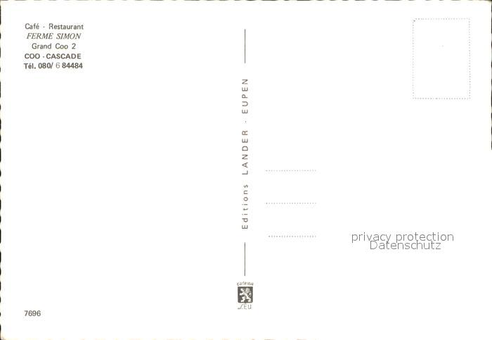 12573013 Coo Stavelot Cafe Restaurant Ferme Simon postalisch nicht gelaufen Erhaltung siehe scans [WerneD78] KatCode: 11070063001150