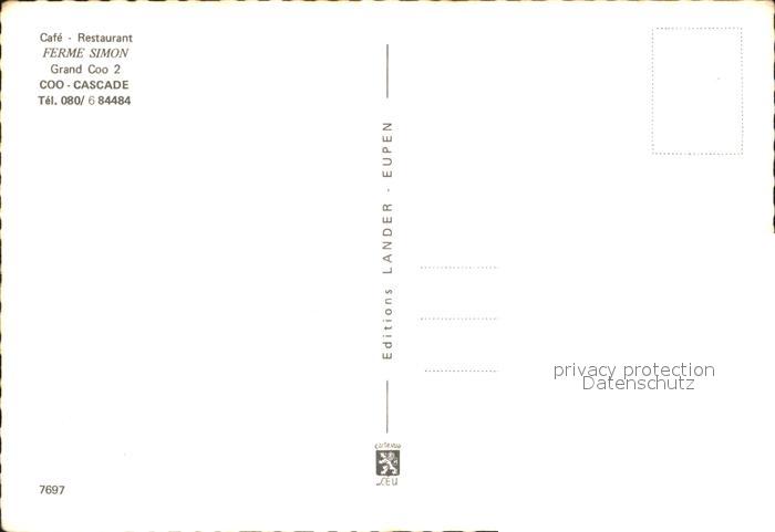 72428860 Coo Stavelot Cafe Restaurant Ferme Simon Gastraum postalisch nicht gelaufen Erhaltung siehe scans KatCode: 11070063001150