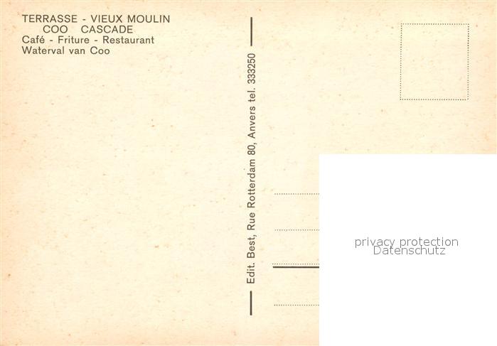73240764 Coo Stavelot Cascade Terrasse Vieux Moulin Restaurant postalisch nicht gelaufen Erhaltung siehe scans [LiesaD40] KatCode: 11070063001150