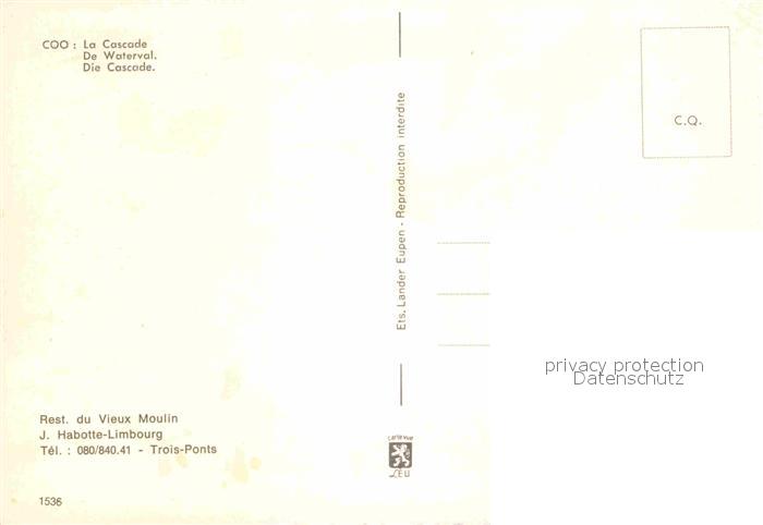 72662103 Coo Stavelot Cascade postalisch nicht gelaufen Erhaltung siehe scans [AndreD76] KatCode: 11070063001150