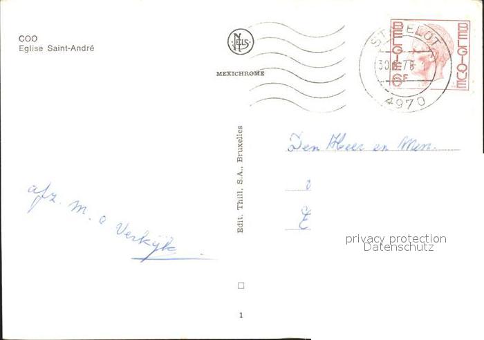 72272844 carte postale Coo Stavelot Eglise Saint Andre postalisch gelaufen Erhaltung siehe scans KatCode: 11070063001150