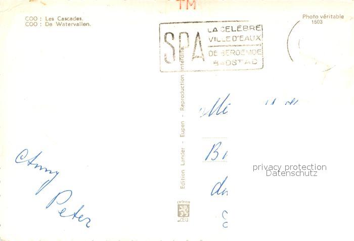 72926814 carte postale Coo Stavelot Les Cascades Wasserfall postalisch gelaufen Erhaltung siehe scans [FriedD77] KatCode: 11070063001150