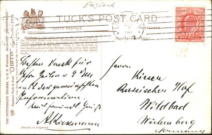 10991211 old postcard cookham postalisch gelaufen KatCode: 11570