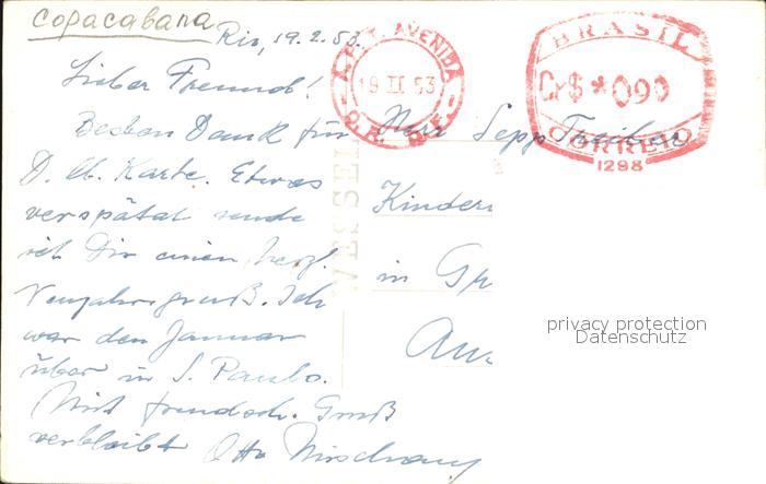 alte Postkarte Copacabana Panorama Kueste Palmen postalisch gelaufen Erhaltung siehe scans