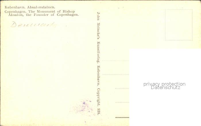 Copenhagen Kobenhavn Absalonstatuen Monument of Bishop Absalon postalisch nicht gelaufen Erhaltung siehe scans