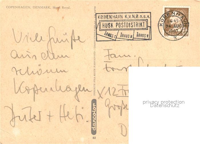 old postcard Copenhagen Kobenhavn Hotel Royal postalisch gelaufen Erhaltung siehe scans [PaolaD17]