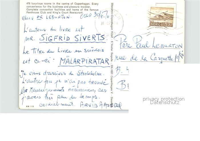 old postcard Copenhagen Kobenhavn Sheraton Hotel postalisch gelaufen Erhaltung siehe scans [FriedD77]