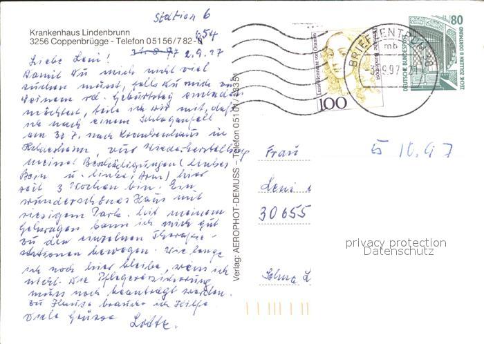72024050 alte Postkarte Coppenbruegge Fliegeraufnahme Krankenhaus Lindenbrunn postalisch gelaufen Erhaltung siehe scans KatCode: 11110003252004