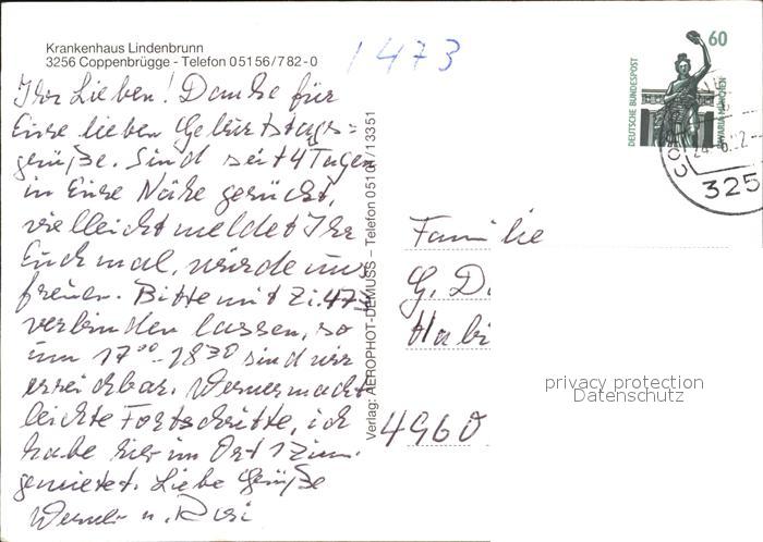 72582030 alte Postkarte Coppenbruegge Krankenhaus Lindenbrunn Fliegeraufnahme postalisch gelaufen Erhaltung siehe scans [WerneD78] KatCode: 11110003252004
