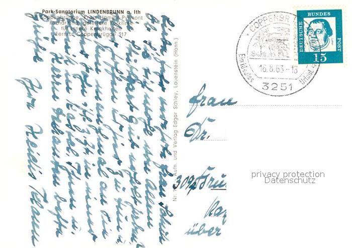 72970159 alte Postkarte Coppenbruegge Park-Sanatorium LIndenbrunn postalisch gelaufen Erhaltung siehe scans [NatalD47] KatCode: 11110003252004