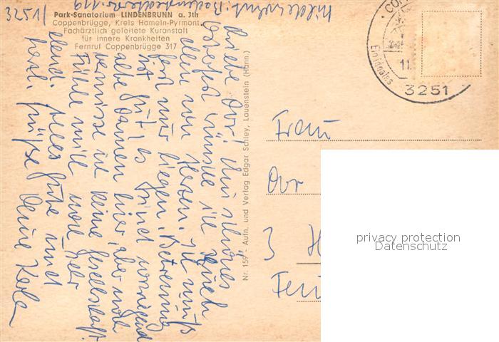 73043847 alte Postkarte Coppenbruegge Park Sanatorium Lindenbrunn postalisch gelaufen Erhaltung siehe scans [WerneD78] KatCode: 11110003252004