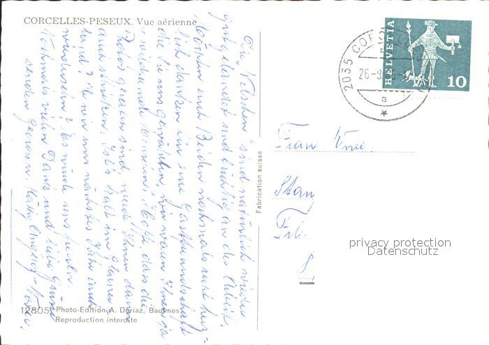 11644682 alte Postkarte Corcelles NE Vue aerienne postalisch gelaufen Erhaltung siehe scans KatCode: 11470130405070