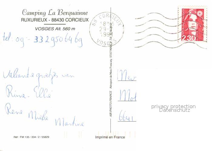 12664443 carte postale Corcieux Fliegeraufnahme Camping La Berquainne Details postalisch gelaufen Erhaltung siehe scans [WerneD78] KatCode: 11170088388115