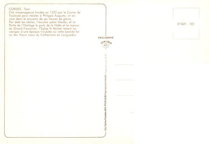 13946920 Cordes-sur-Ciel 81 Tarn Panorama Cité moyenageuse postalisch nicht gelaufen Erhaltung siehe scans [FriedD77] Frie Katcode 11170081181069