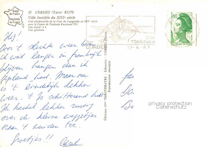 12687479 carte postale Cordes-sur-Ciel Ville fortifiee du XIII siecle postalisch gelaufen Erhaltung siehe scans [FriedD77] KatCode: 11170081181069