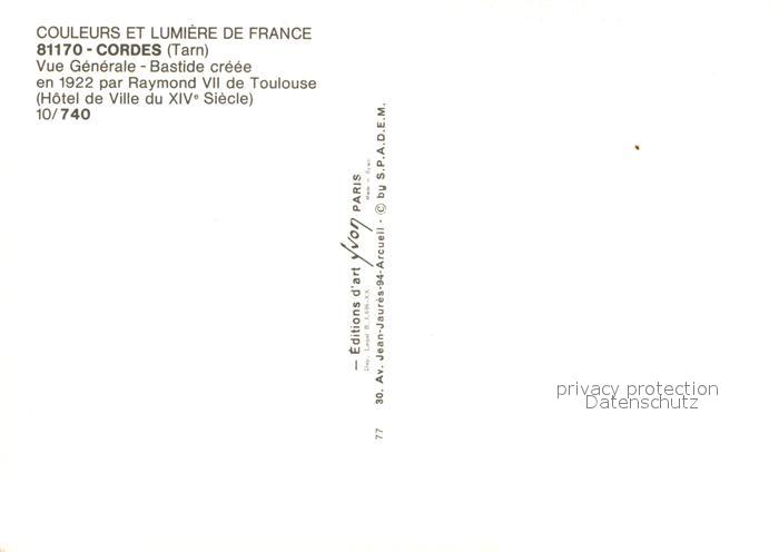 13583177 Cordes-sur-Ciel Vue generale Bastide cree en 1922 Hotel de Ville postalisch nicht gelaufen Erhaltung siehe scans [WerneD78] Wern Katcode 11170081181069