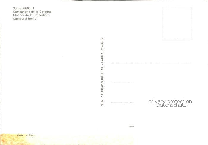 Cordoba Andalucia Clocher de la Cathedrale postalisch nicht gelaufen Erhaltung siehe scans