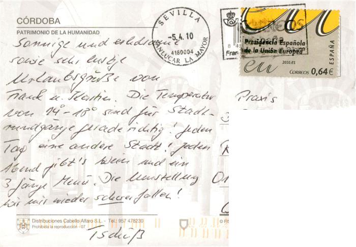 73904803 old postcard Cordoba Andalucia ES Patrimonio de la Humanidad postalisch gelaufen Fliegeraufnahme Erhaltung siehe scans [FriedD77] KatCode: 11510
