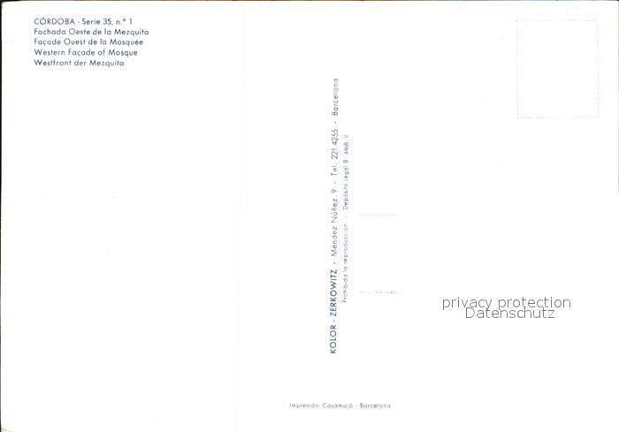 Cordoba Andalucia Fachada Oeste de la Mezquita postalisch nicht gelaufen Erhaltung siehe scans [NatalD47]