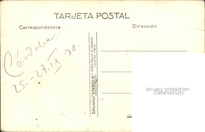 alte Postkarte Cordoba Andalucia Mezquita La atorre desda el Patio de los Naranjos postalisch gelaufen Erhaltung siehe scans