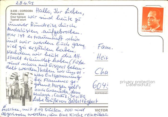 old postcard Cordoba Andalucia Patio Tipico postalisch gelaufen Erhaltung siehe scans