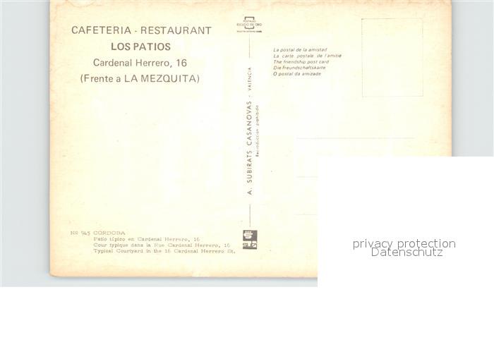 Cordoba Andalucia Restaurante Cafeteria Los Patios postalisch nicht gelaufen Erhaltung siehe scans