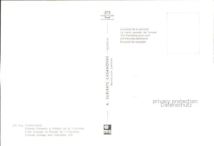 Cordoba Andalucia Romain bridge Albolafia mill postalisch nicht gelaufen Erhaltung siehe scans