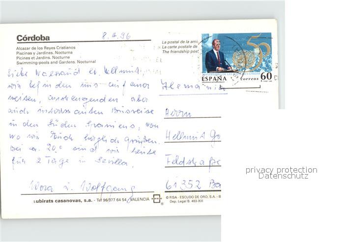 old postcard Cordoba Andalucia Schwimmbad Park postalisch gelaufen Erhaltung siehe scans