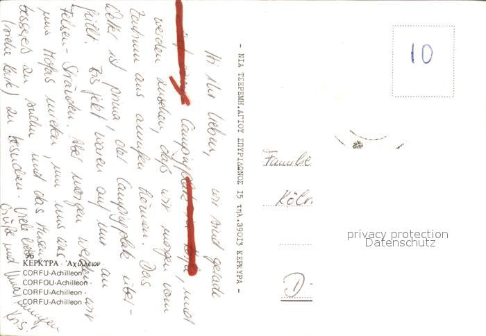 old postcard Corfou Achilleion Palast Statue Gemaelde Triumph des Achilles Skulptur postalisch gelaufen Erhaltung siehe scans