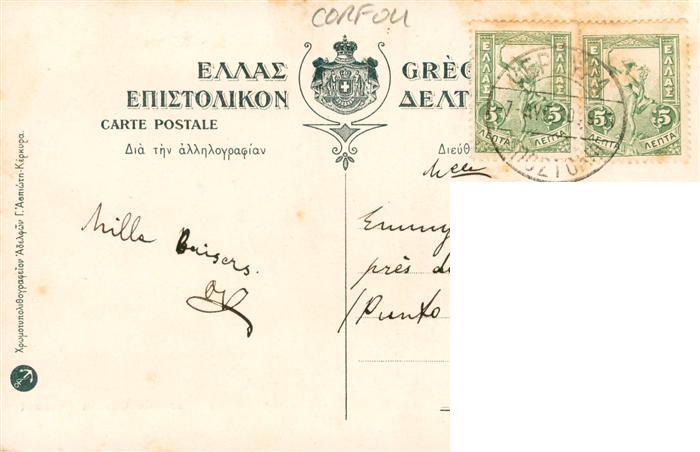 old postcard Corfou Korfu Corfu Greece Paysans de Corfou dansant postalisch gelaufen Erhaltung siehe scans [FriedD77]