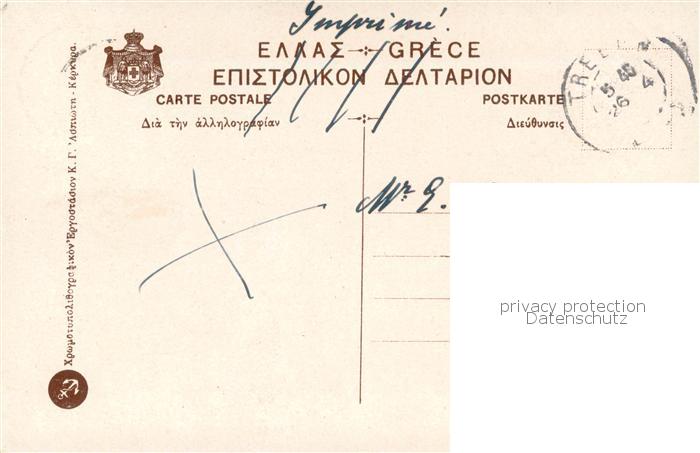 73774926 Corfou Korfu Corfu Greece Vue orientale prise du Moulin a vent Peinture Kuenstlerkarte postalisch gelaufen Erhaltung siehe scans [FriedD77] old postcard Frie Katcode 11190