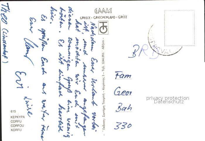 old postcard Corfu Korfu Fliegeraufnahme Strand postalisch gelaufen Erhaltung siehe scans