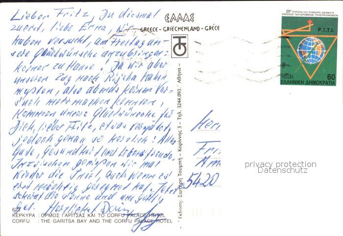 old postcard Corfu Korfu Garitsa Bay Palace Hotel postalisch gelaufen Erhaltung siehe scans
