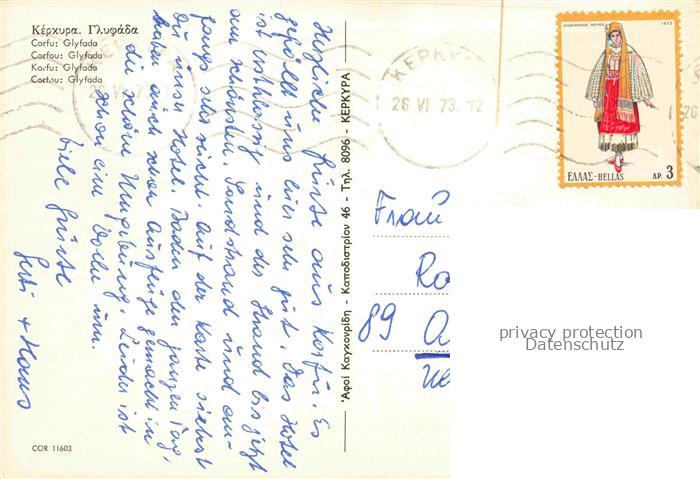74005870 old postcard Corfu Korfu Greece Glyfada postalisch gelaufen Erhaltung siehe scans [WerneD78] KatCode: 11190