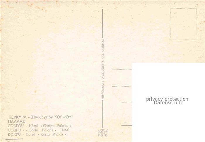 74110283 Corfu Korfu Greece Hotel Corfu Pallas postalisch nicht gelaufen Erhaltung siehe scans [WerneD78] KatCode: 11190